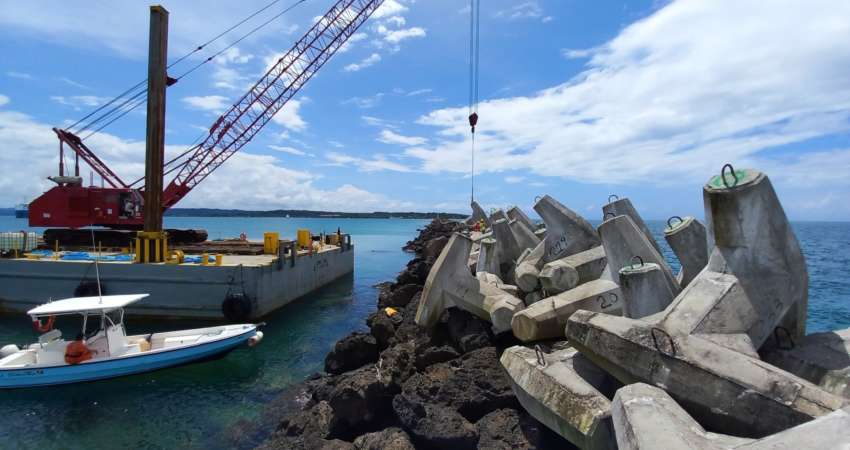 Fecha del trabajo:2021-2022 Transporte e instalación de 500 dolos de concreto de 8 toneladas en el rompeolas de Cristobal.